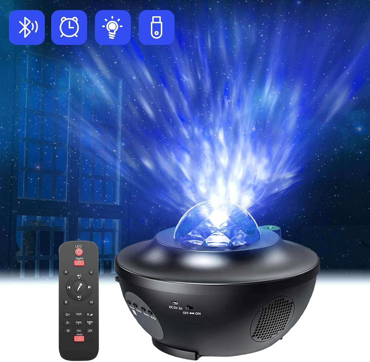 - [Diseño único]: Adopta cuentas de alta calidad, gran chip y alto brillo. La cobertura de proyección es más amplia. 81 lentes, cada lente puede emitir 3-6 haces, un total de hasta 240-480 haces de luz. con larga vida, características de alto brillo, vida del LED de hasta 20,000 horas.